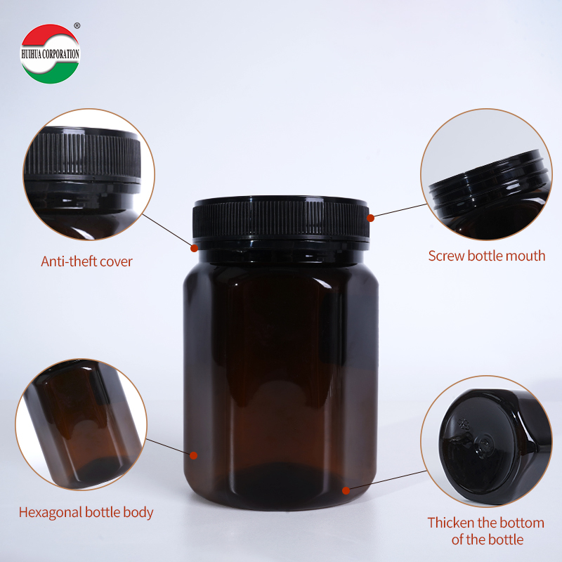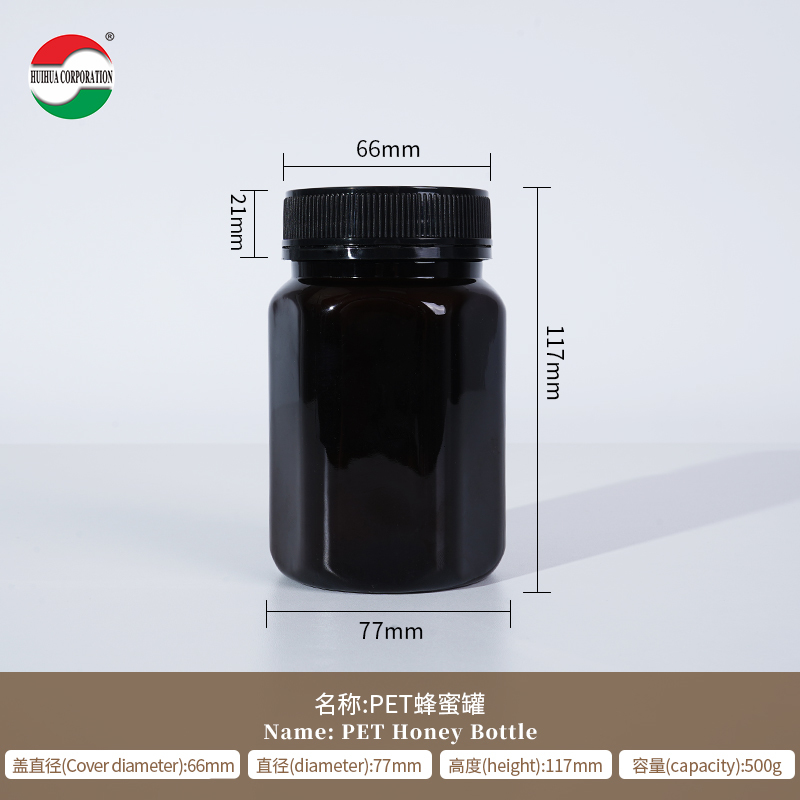 Bottiglia in PET per miele cilindrica in plastica trasparente personalizzata con coperchio a vite per imballaggio di prodotti per la salute per uso alimentare ed ecologico