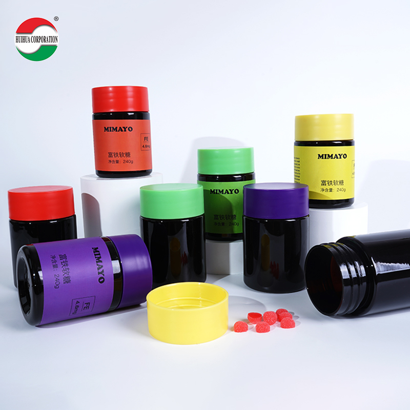 Huihua Imballaggio OEM Etichettatura Nero Evita luce 240g PET Cann Cann Cann di plastica per dolci dolci prodotti sanitari