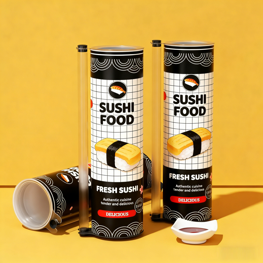 x| nome | Tubo di carta per sushi pop-up push-up ecologico per uso alimentare con confezione in contenitore di | Stampa del logo | UV, stampa a caldo, stampa in quadricromia |