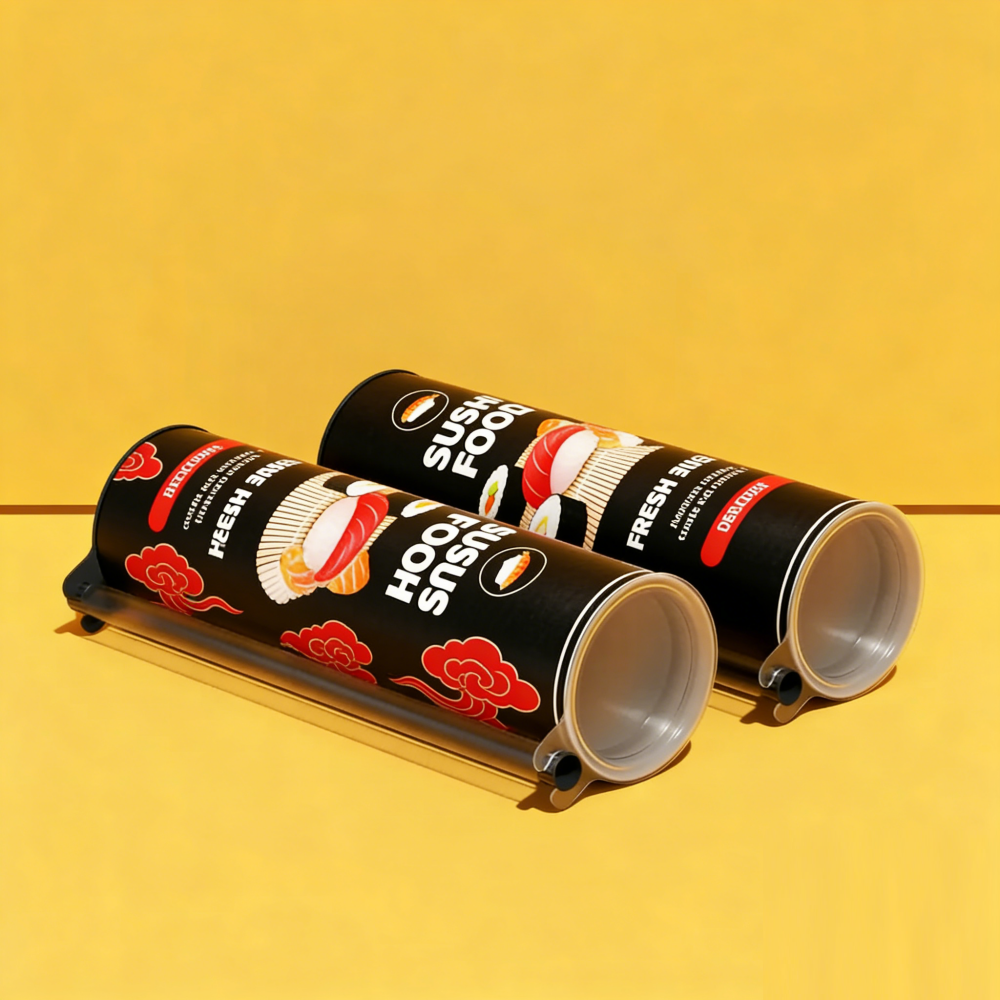 Custom Printed Eco-friendly Food Grade Push up Sushi Paper Tube with Chopsticks Paper Canister Packaging